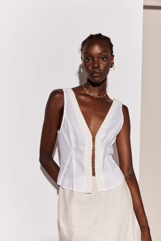 Allegra Linen Top White
