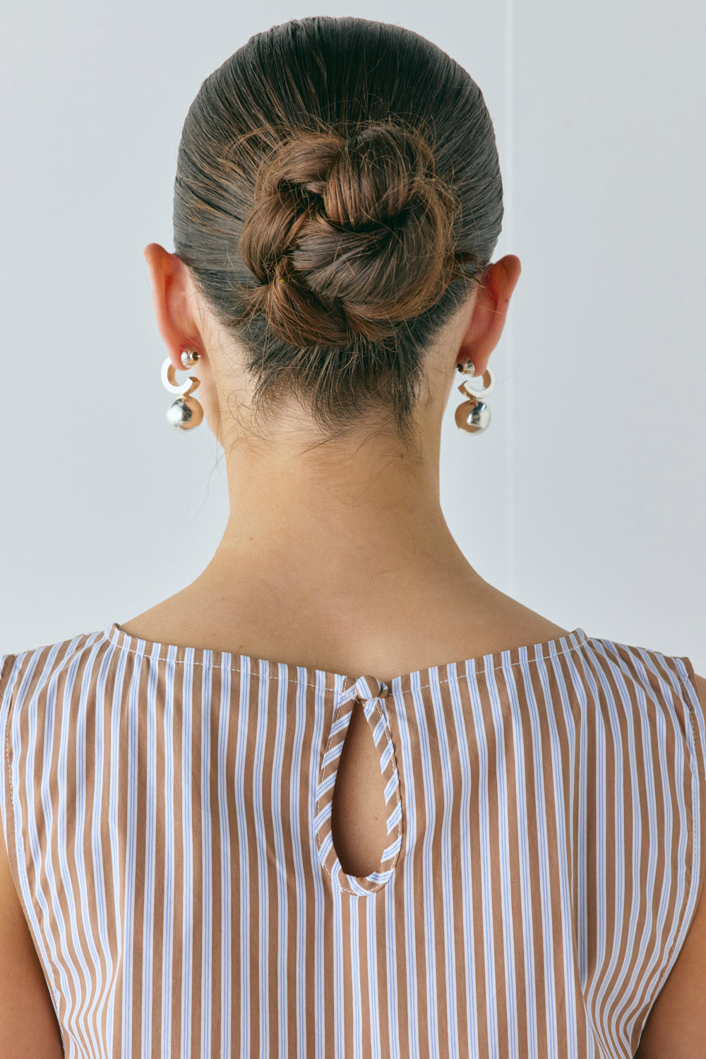 The iconic Aftersun Mini Dress, now in Brown Stripe. Designed with a relaxed a-line fit, side splits and back keyhole cut-out. Designed in Australia.