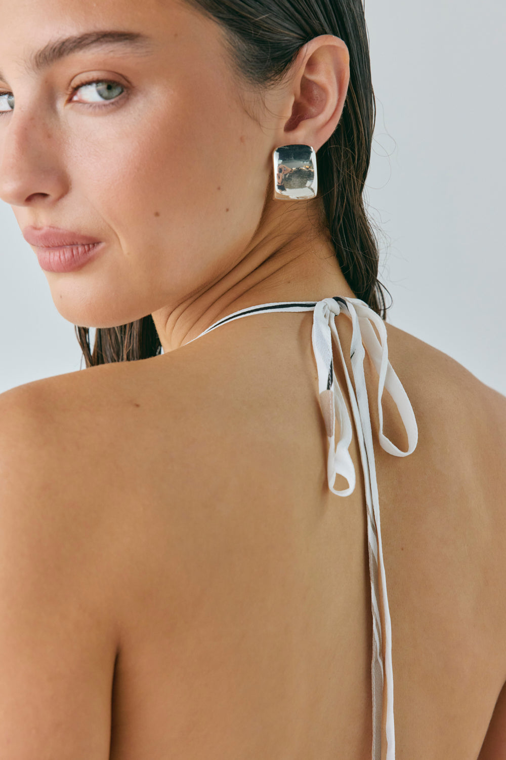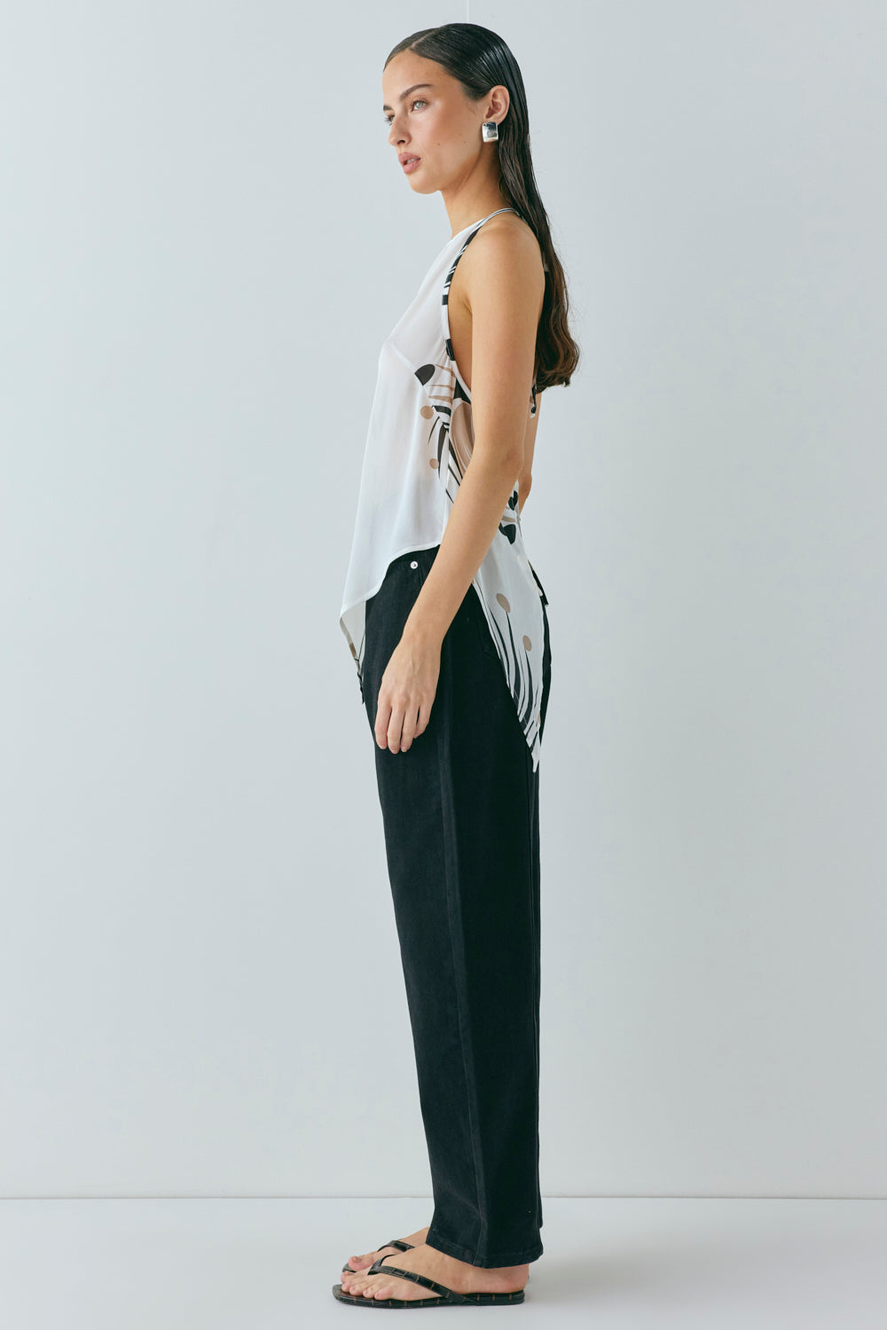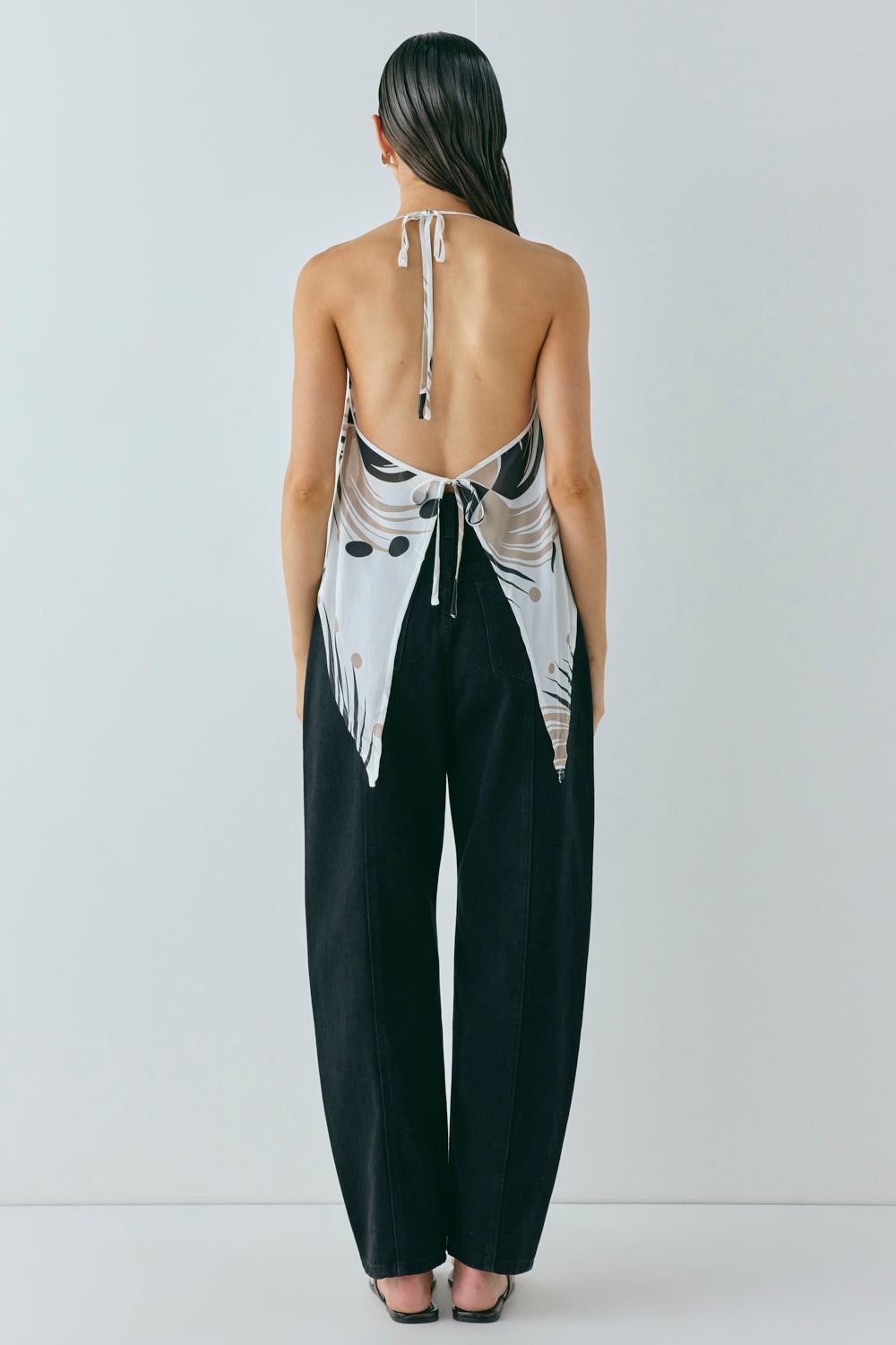The Alisa Halter Top Neo features an exclusive in-house print, halter neck, pointed hem, back slit, and centre back tie. Designed in Australia.