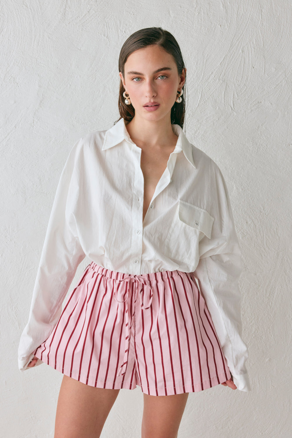 The best selling Annika Shorts, now in a Berry Stripe. Featuring an elastic drawstring waist and side pockets. Designed in Australia.