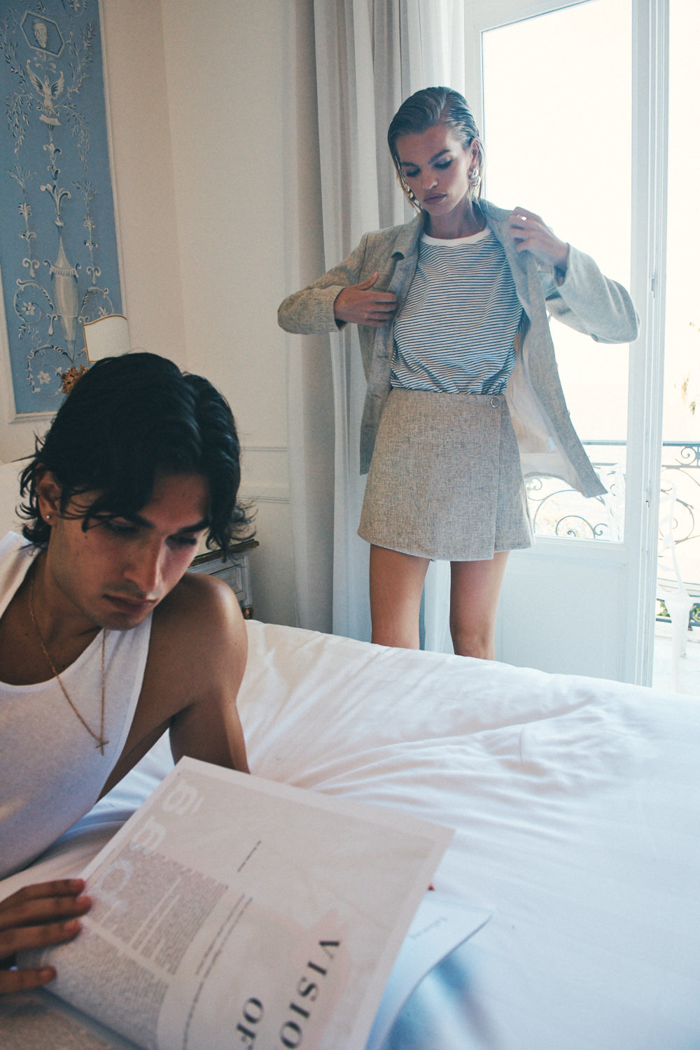 The Cove Skort in Wheat. Featuring a side zip and front button opening. Designed in Australia.