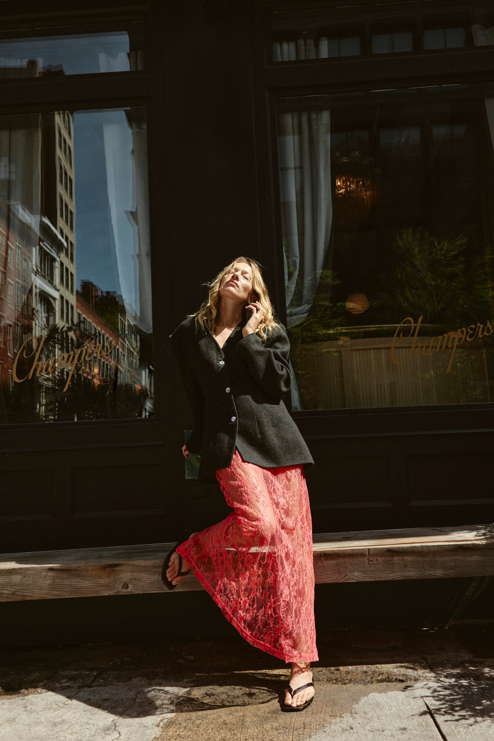 The Devyn Lace Midi Skirt, now in our custom dyed Pink. Designed in a lace fabric with a side zip closure and back slit feature. Designed in Australia.
