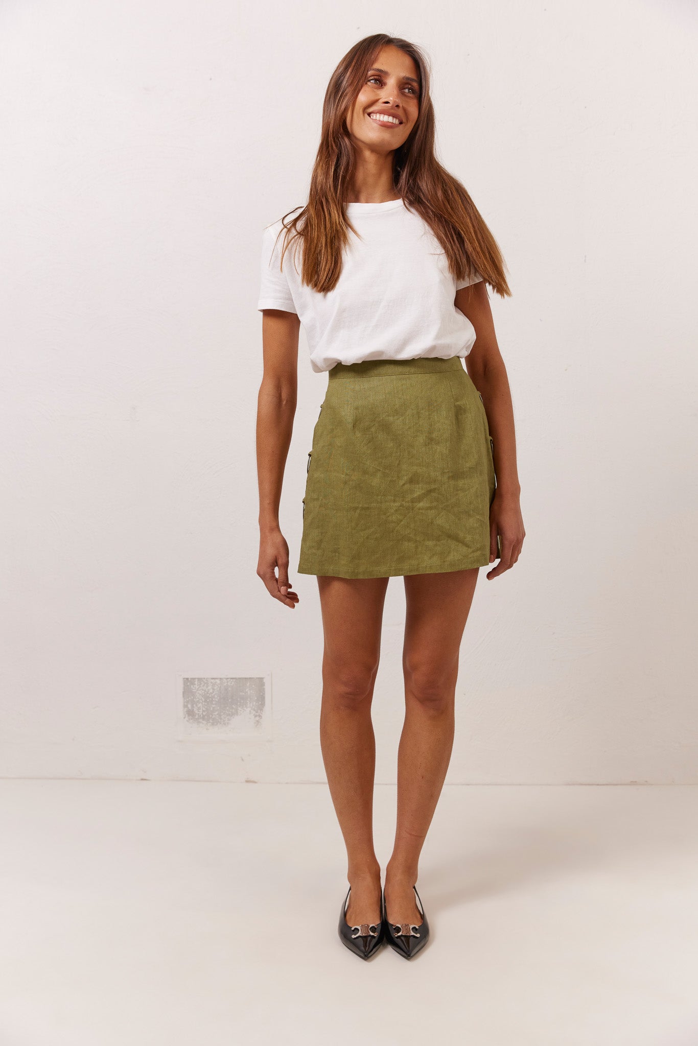 Discoteca Linen Mini Skirt Olive
