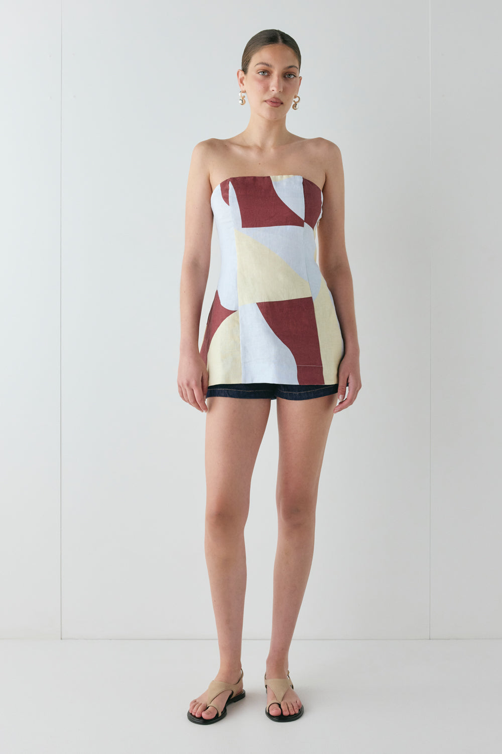 Strapless with gel tape support and an adjustable tie-up back - the linen top in our exclusive Muna print made to stay put and stand out. Fully lined. Shop now.