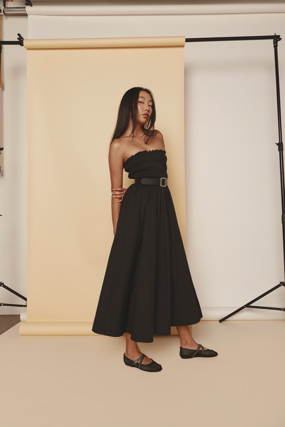Feminine, easy-fitting and effortlessly luxe. The Eliana Midi Dress ticks every box. Made from 100% cotton, it's lightweight and cool to wear. With an elastic shirred bust and loose fitting skirt, this style suits all body shapes and sizes. Please note belt is not included.