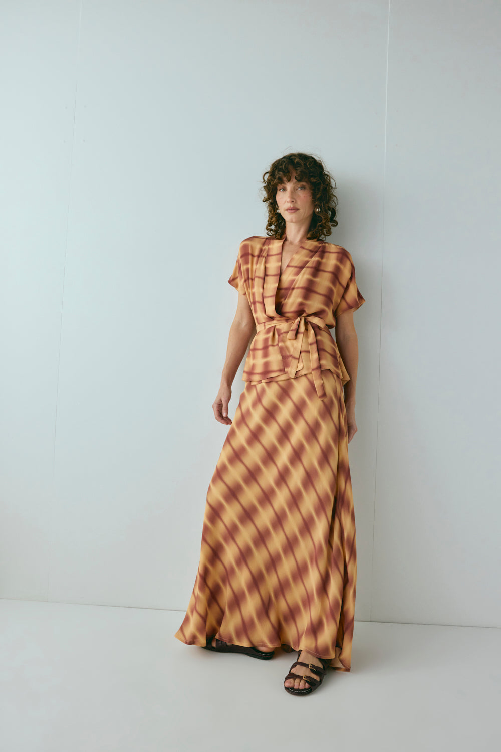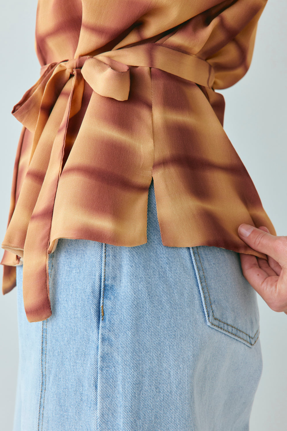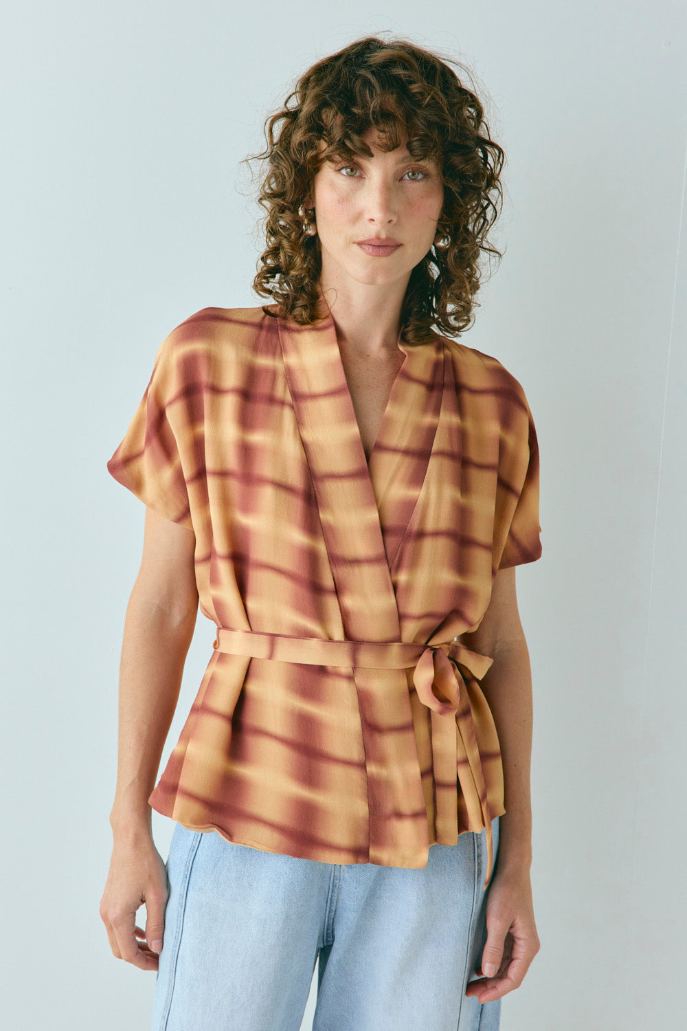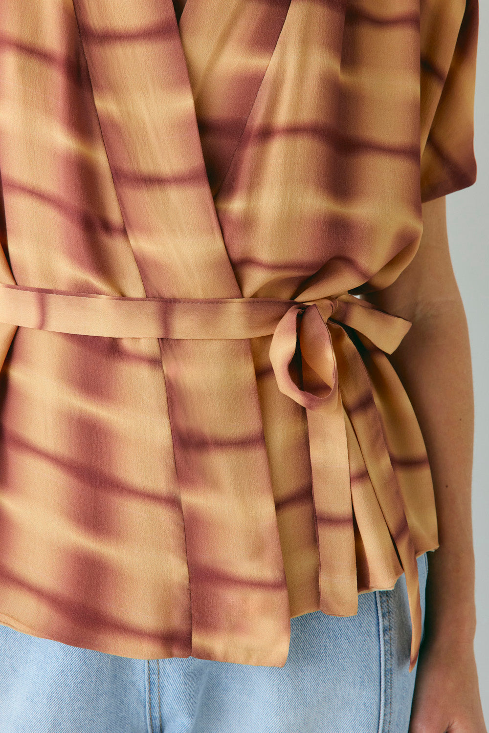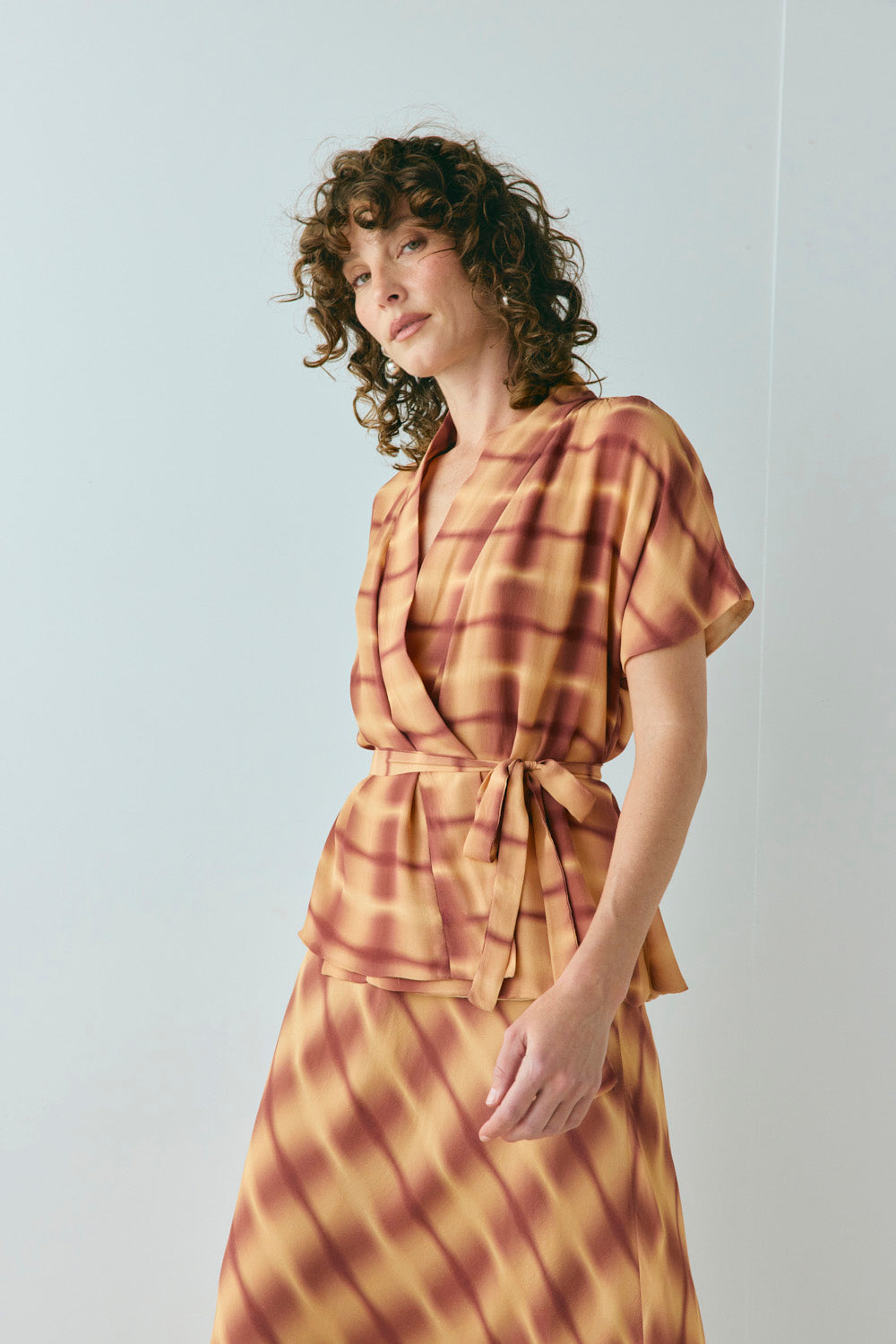 The Frida Top Aro, created with an exclusive in-house print. Featuring a detachable belt, robe detailing and full lining. Designed in Australia.