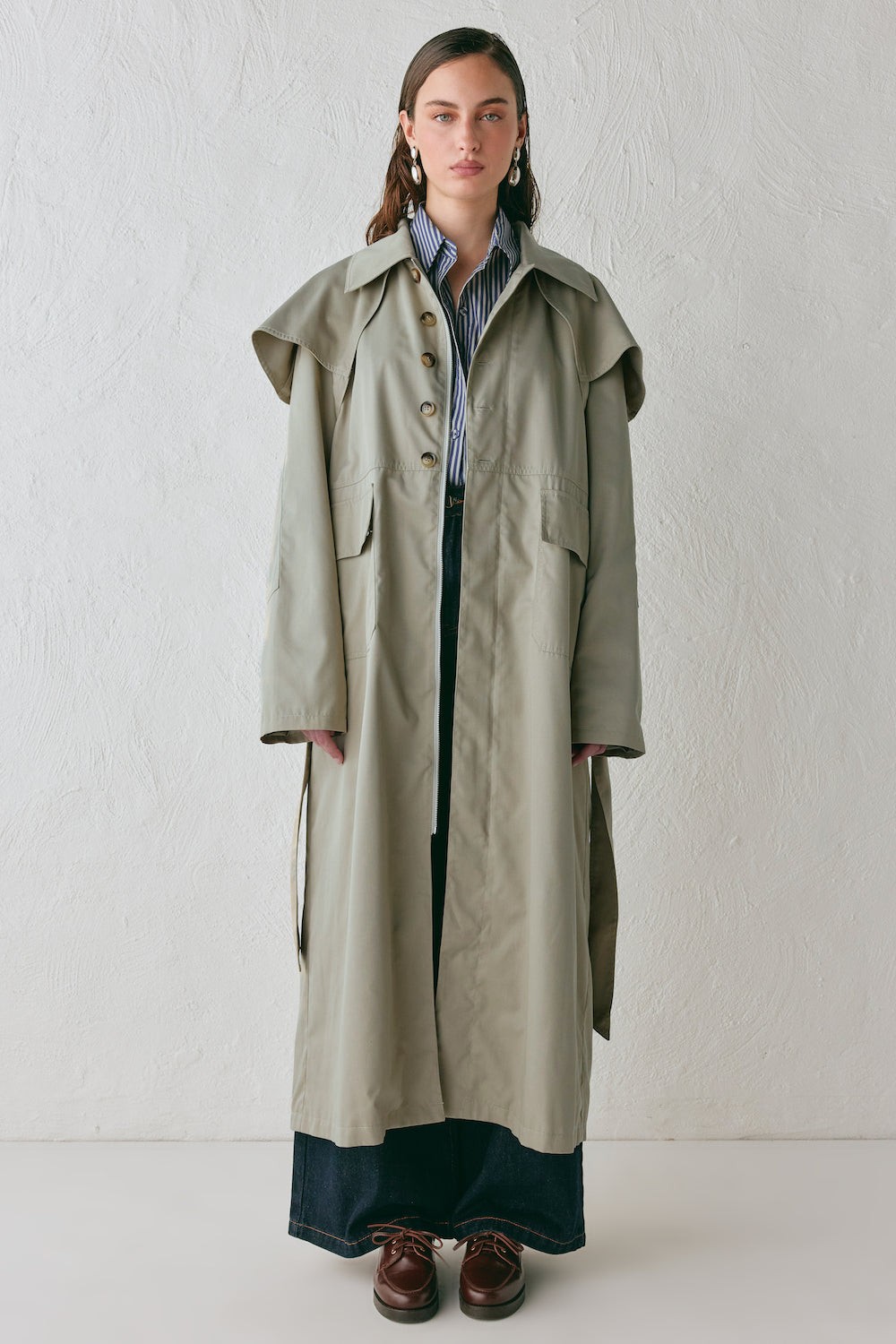 The Gina Trench Coat Taupe is designed with an oversized fit, a storm flap detail, back slit & a removable belt. Designed in Australia.