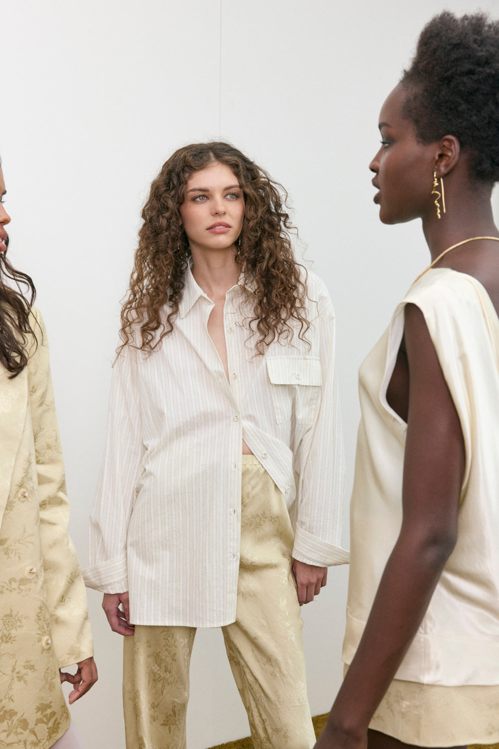 The June Shirt Cream Stripe, made with 100% cotton. Designed to be an oversized fit with centre front buttons, front pocket and button-up cuffs. Designed in Australia.