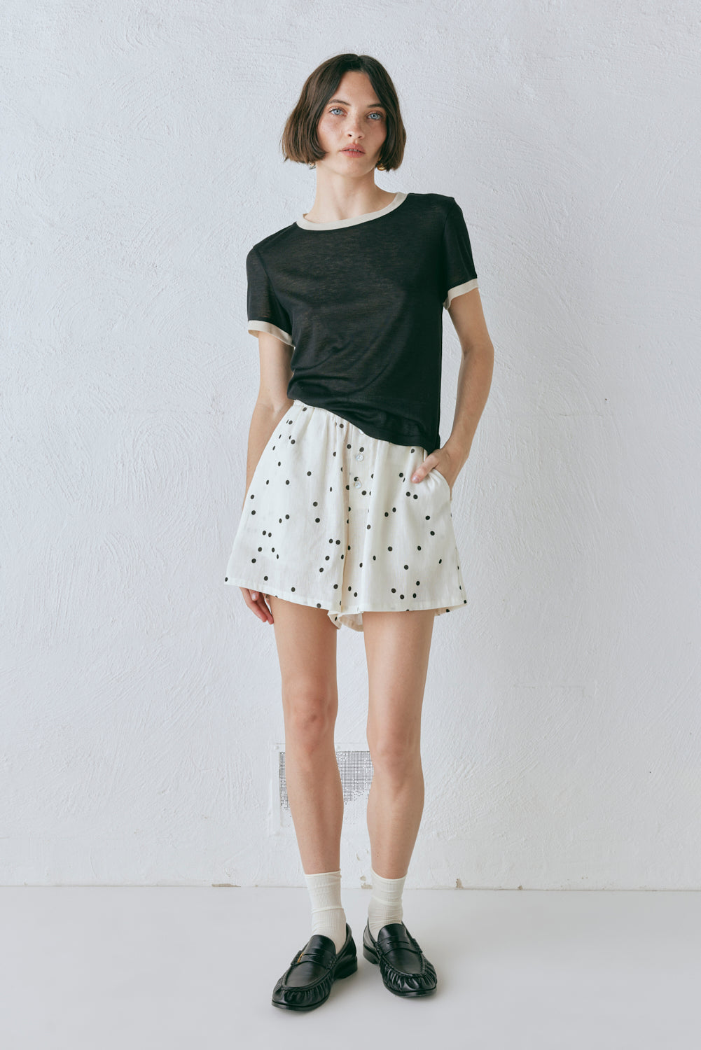 Lane Tee Black is designed with a slight stretch fabric, contrast bind on neckline and sleeves. Designed in Australia.