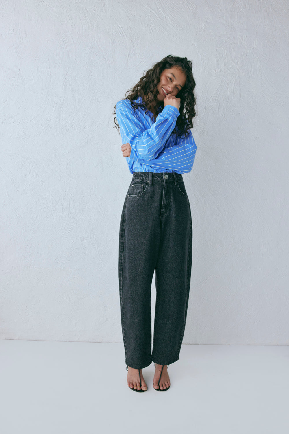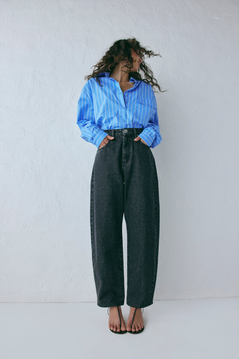 The Lex Barrel Denim Jeans Washed Black are made from 100% Cotton, with a classic five pocket styling, curved barrel leg shape and branded hardware. Designed in Australia.