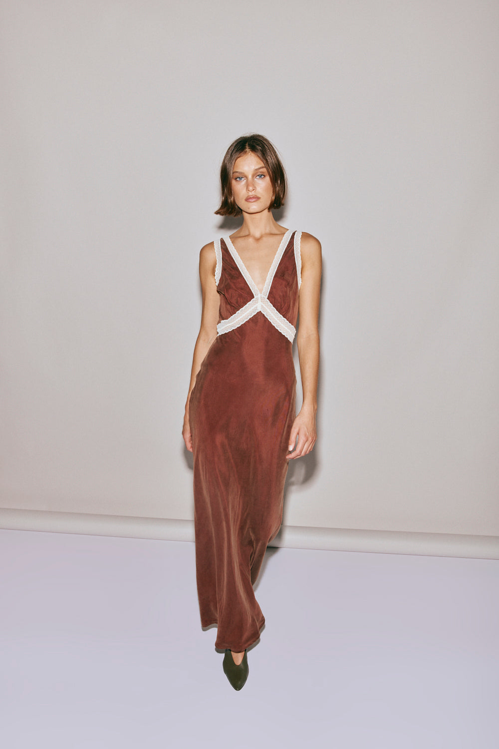 Meet Me On The Dance Floor Bias Cut Maxi Dress Umber