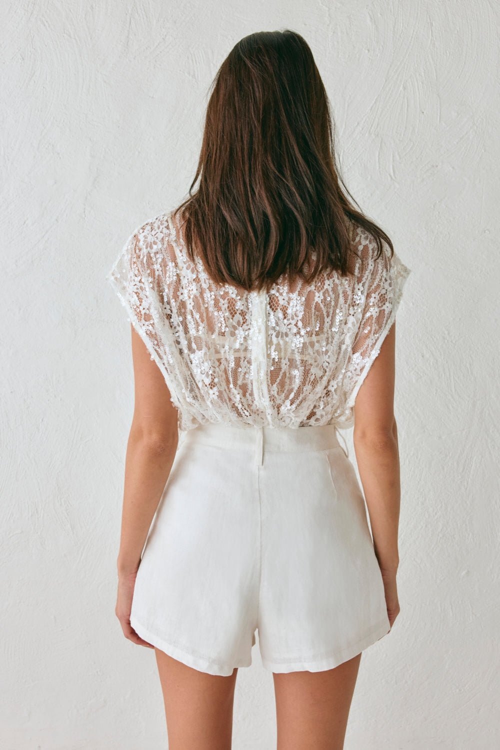 The Nela Shorts in White are made from 100% linen with 100% Cotton lining. Featuring a front pleat design, side pockets and belt loops. Designed in Australia.