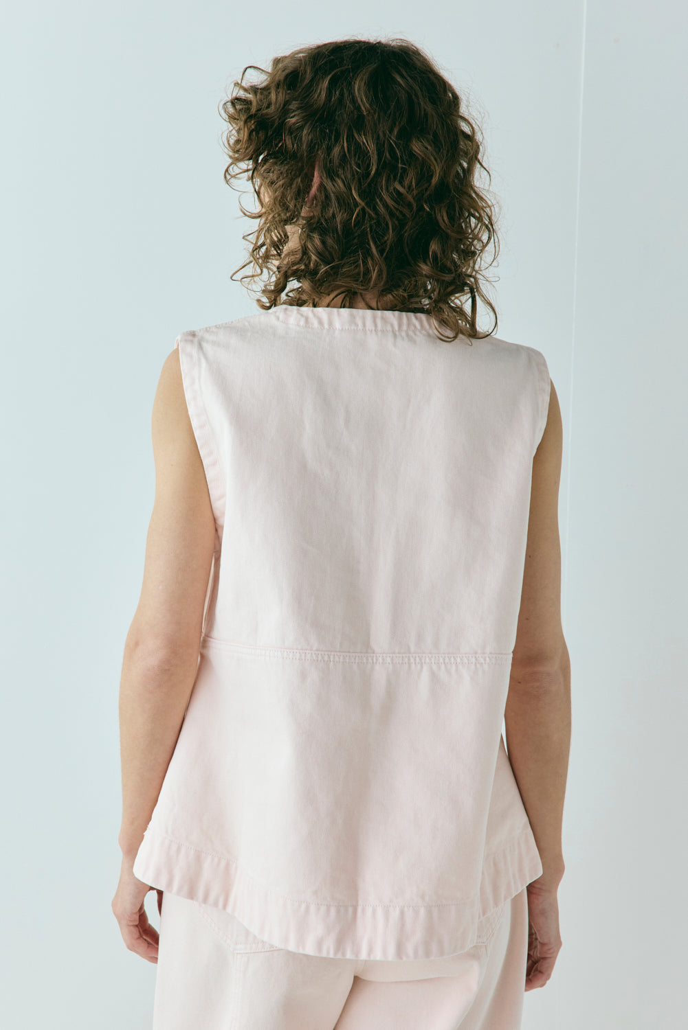 The Nola Denim Top in Musk, made with 100% cotton. Designed with a V neck front  and gathered under bust. Designed in Australia.