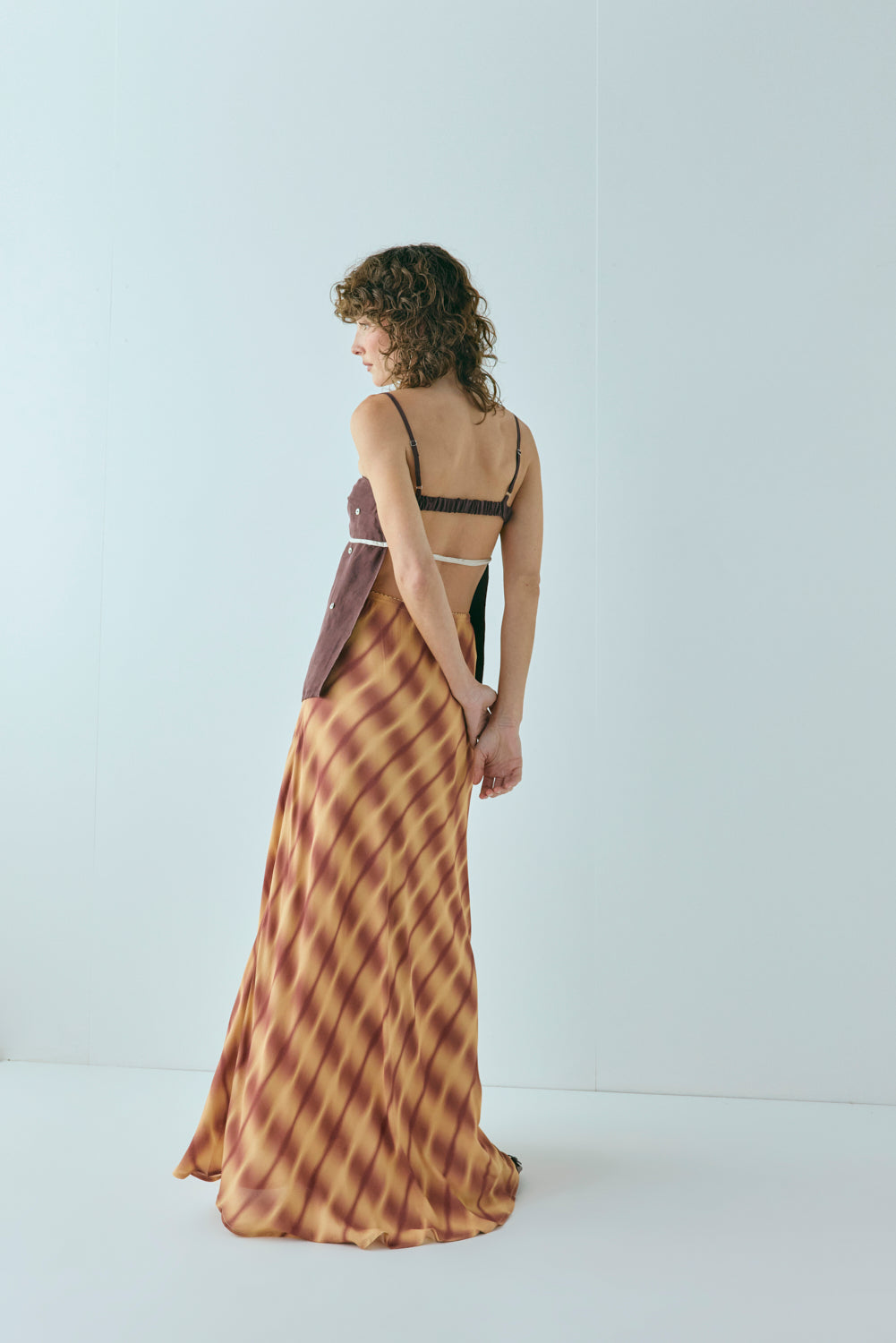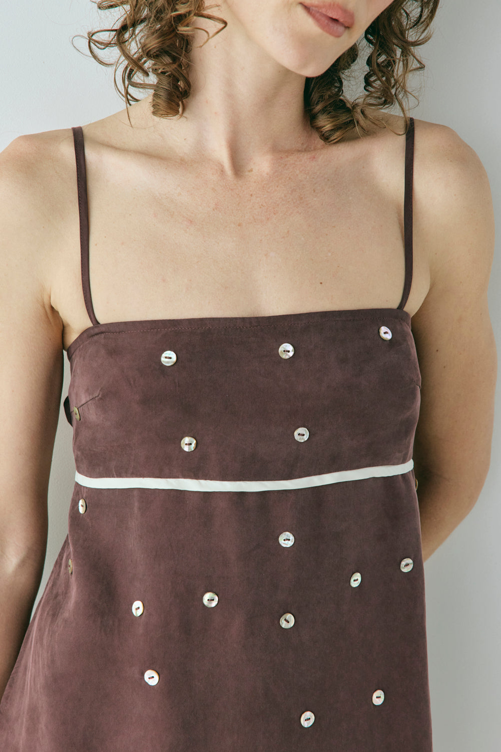 The Ryett Top in Wine. Featuring a straight neckline, open back with elastic back strap, adjustable shoulder straps and shell button detailing. Designed in Australia.