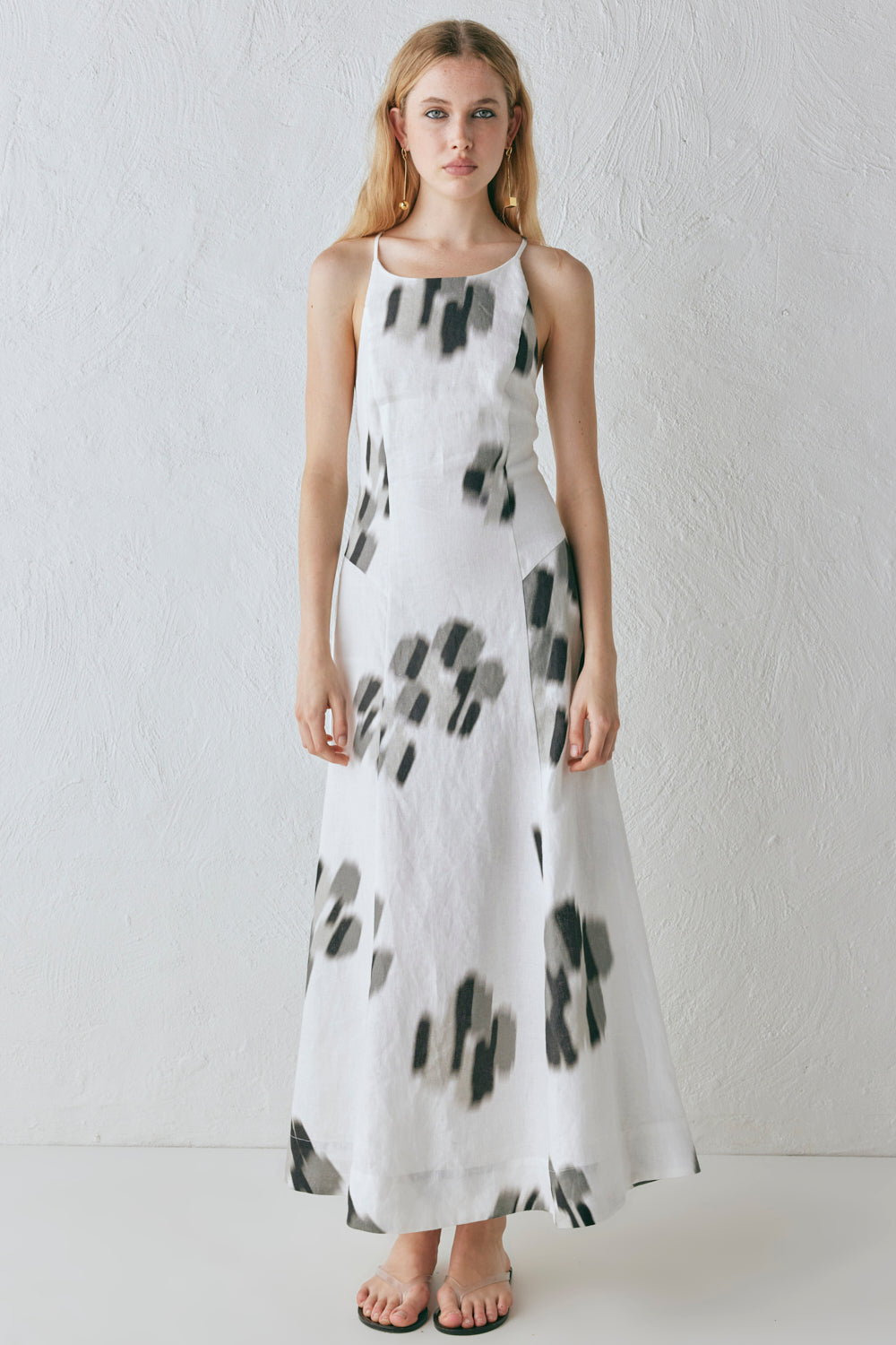 The Stef Linen Maxi Dress showcases a floral in-house VRG GRL print. Made from 100% Linen, fully lined, adjustable straps & a tie back detail. Designed in Australia.