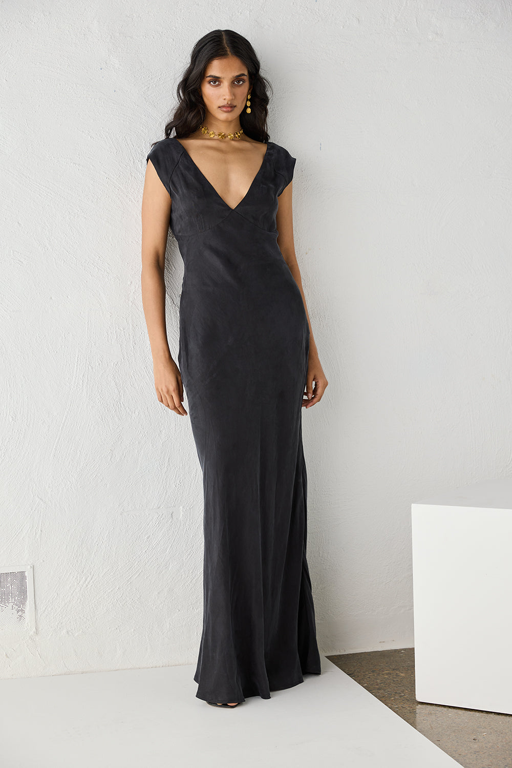 The Valya Maxi Dress in Black. Created with a hidden side zip and bias cut. Designed in Australia.
