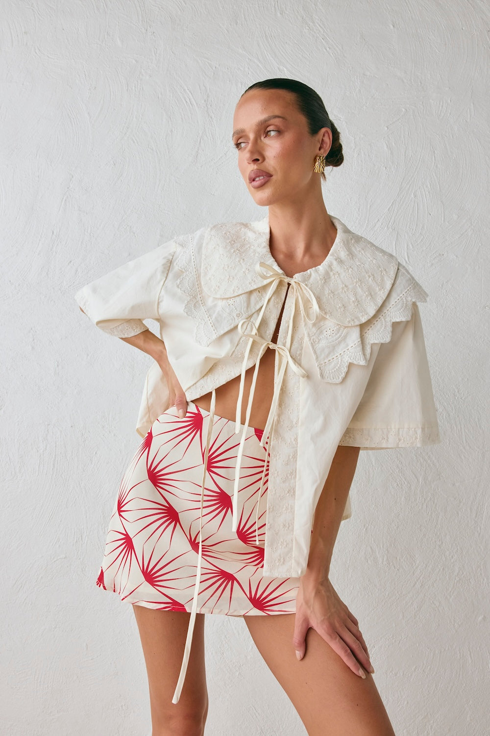 The Vintage Lover Bias Cut Mini Skirt Luz is designed on the bias for a flattering fit with an elastic waist. Designed in Australia.