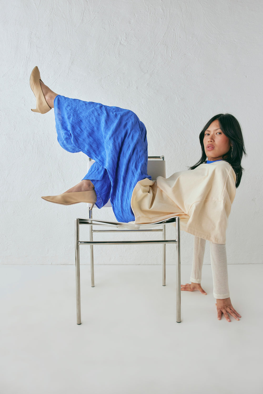 The Willow Tee in Custard offers an oversized fit, made from 100% cotton with slight stretch. Featuring a contrast ribbed neckline. Designed in Australia.