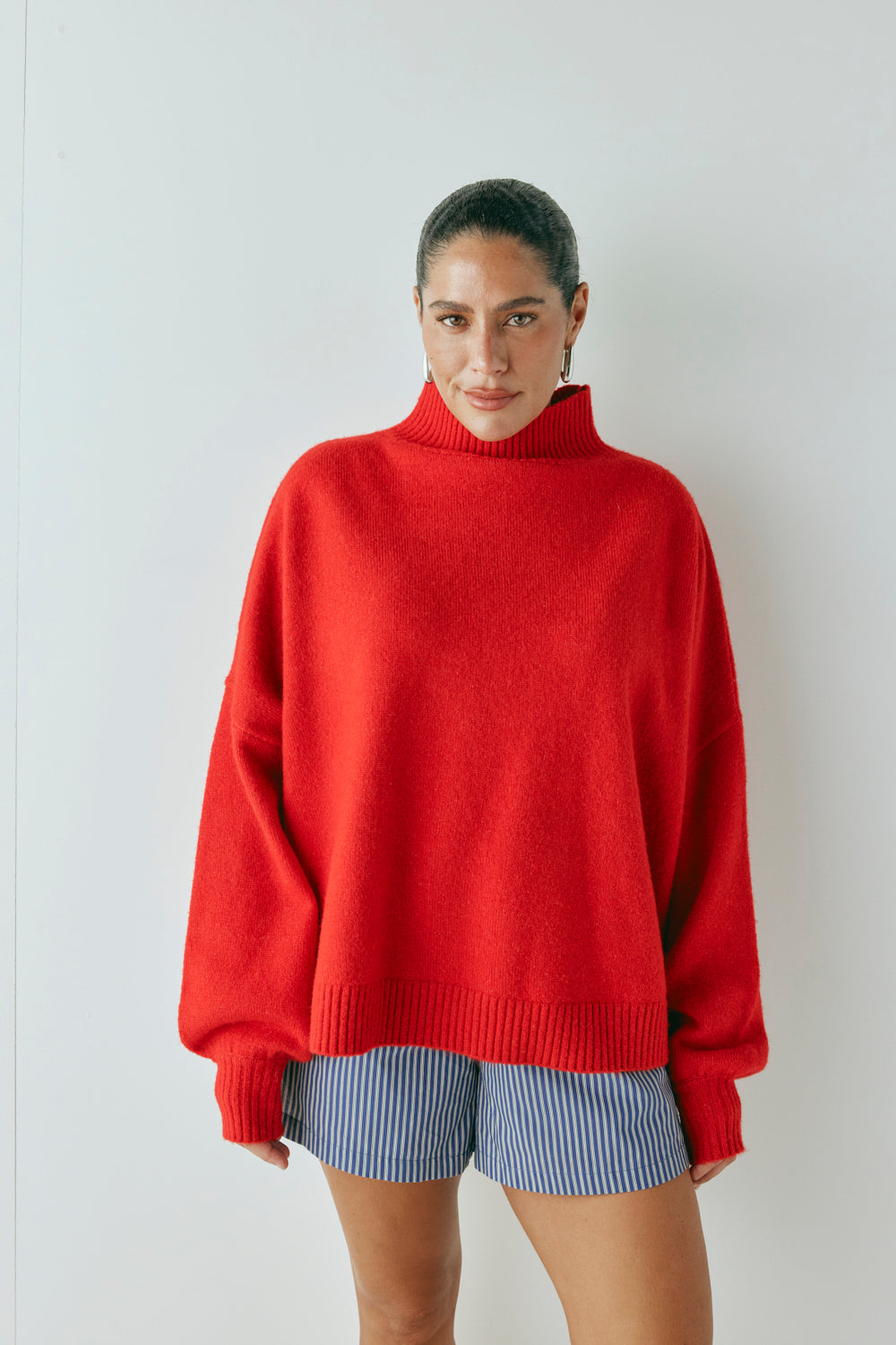 The Yumi Knit Jumper Red features a cozy ribbed neckline, cuffs & hem. Designed with an intentional relaxed fit. Designed in Australia.